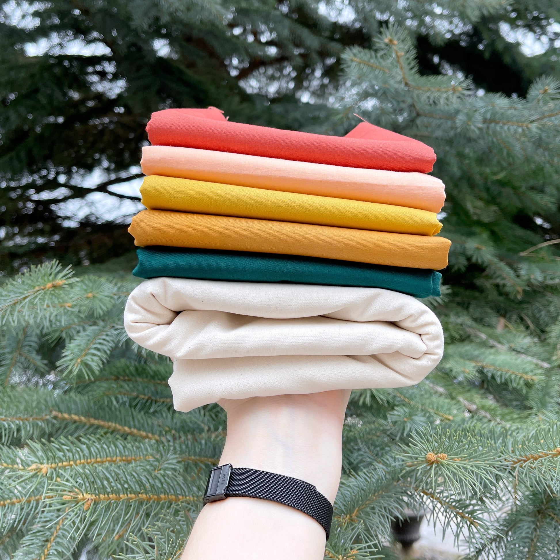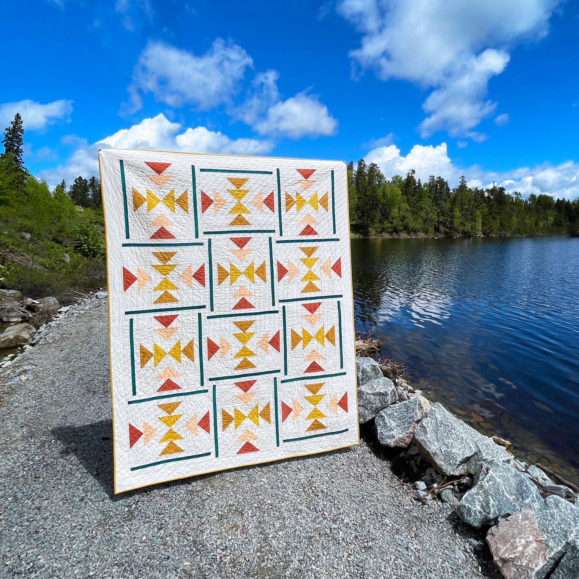 This bundle includes the Kona Cotton fabrics for this boho inspired Landmark quilt!