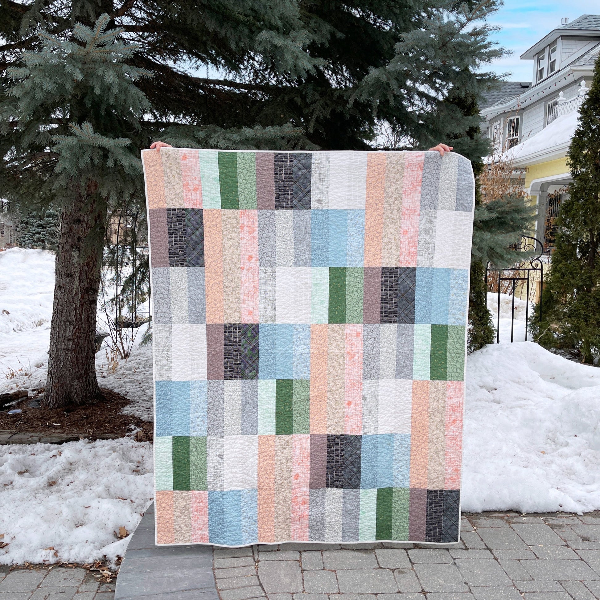 This modern original quilt pattern is appropriate for quilters of all skill levels and is a fast finish. Great for yardage, fat quarters (throw size!) or even scraps!