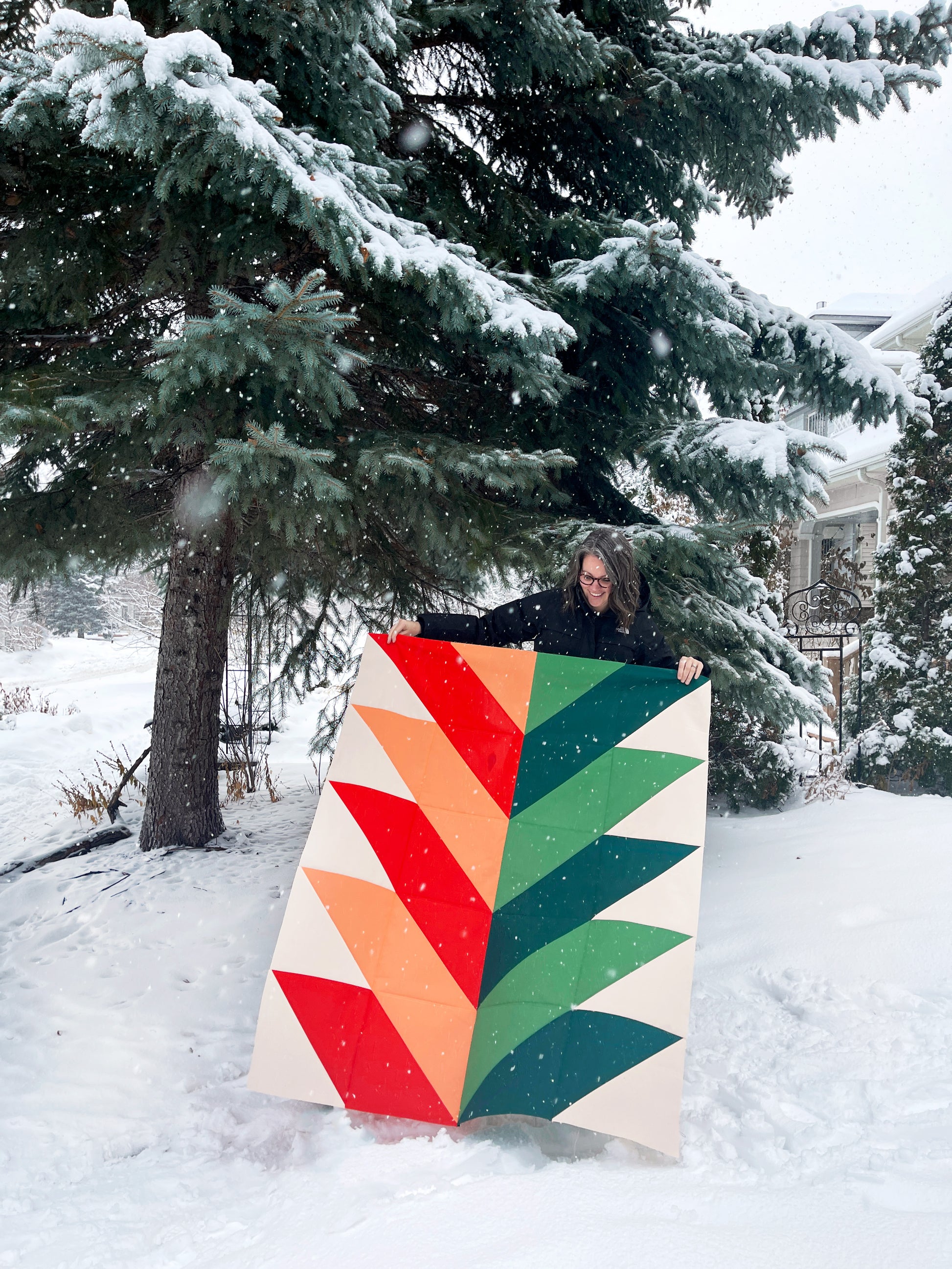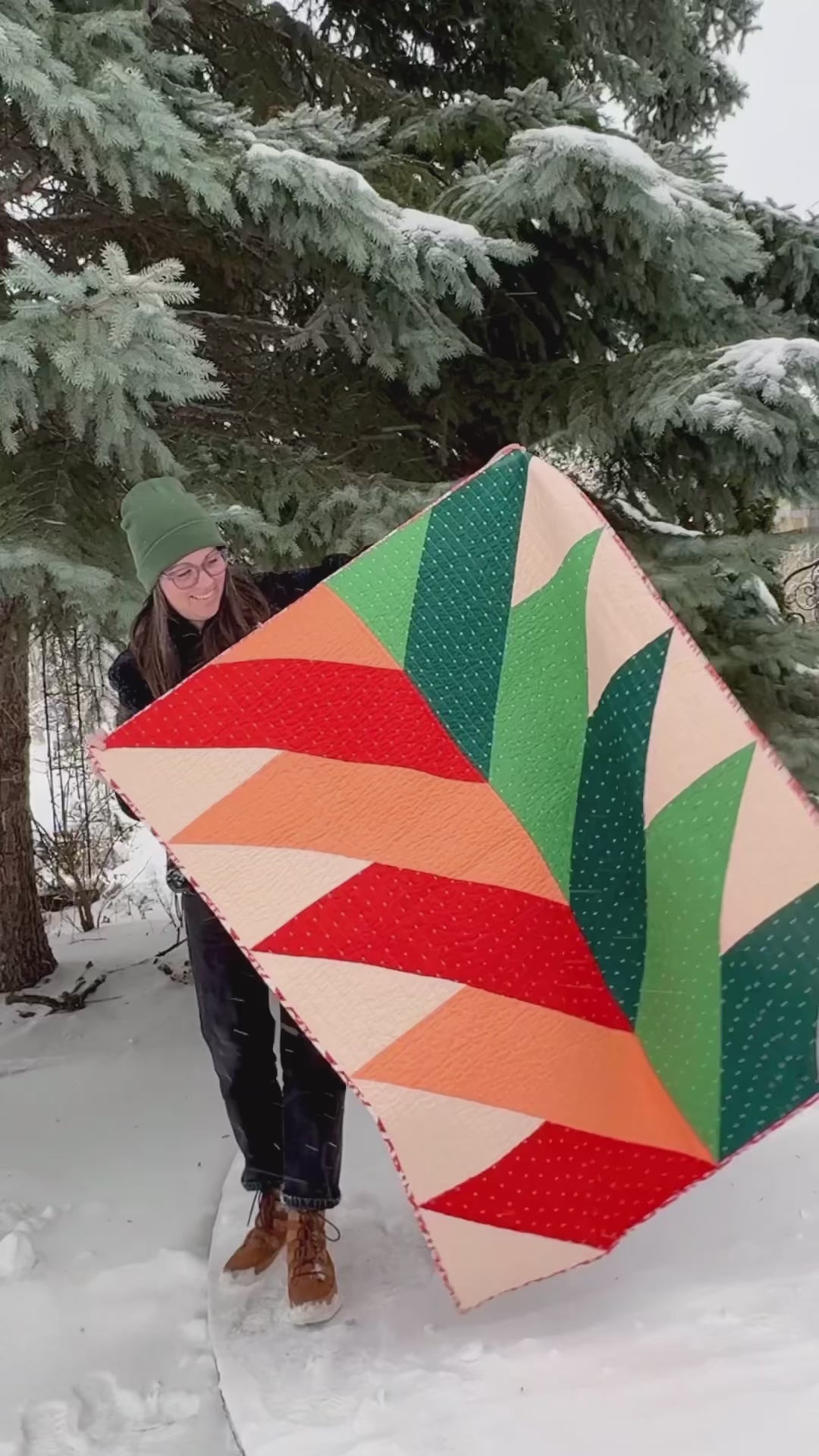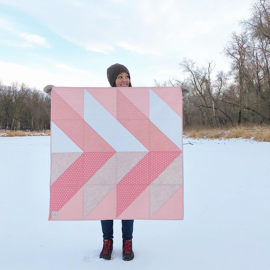 This minimal and modern original quilt pattern is appropriate for quilters of all skill levels and is a fast finish. Inspired by the great Canadian wilderness, this design is a nod to both the towering pines trees and cascading waterfalls.