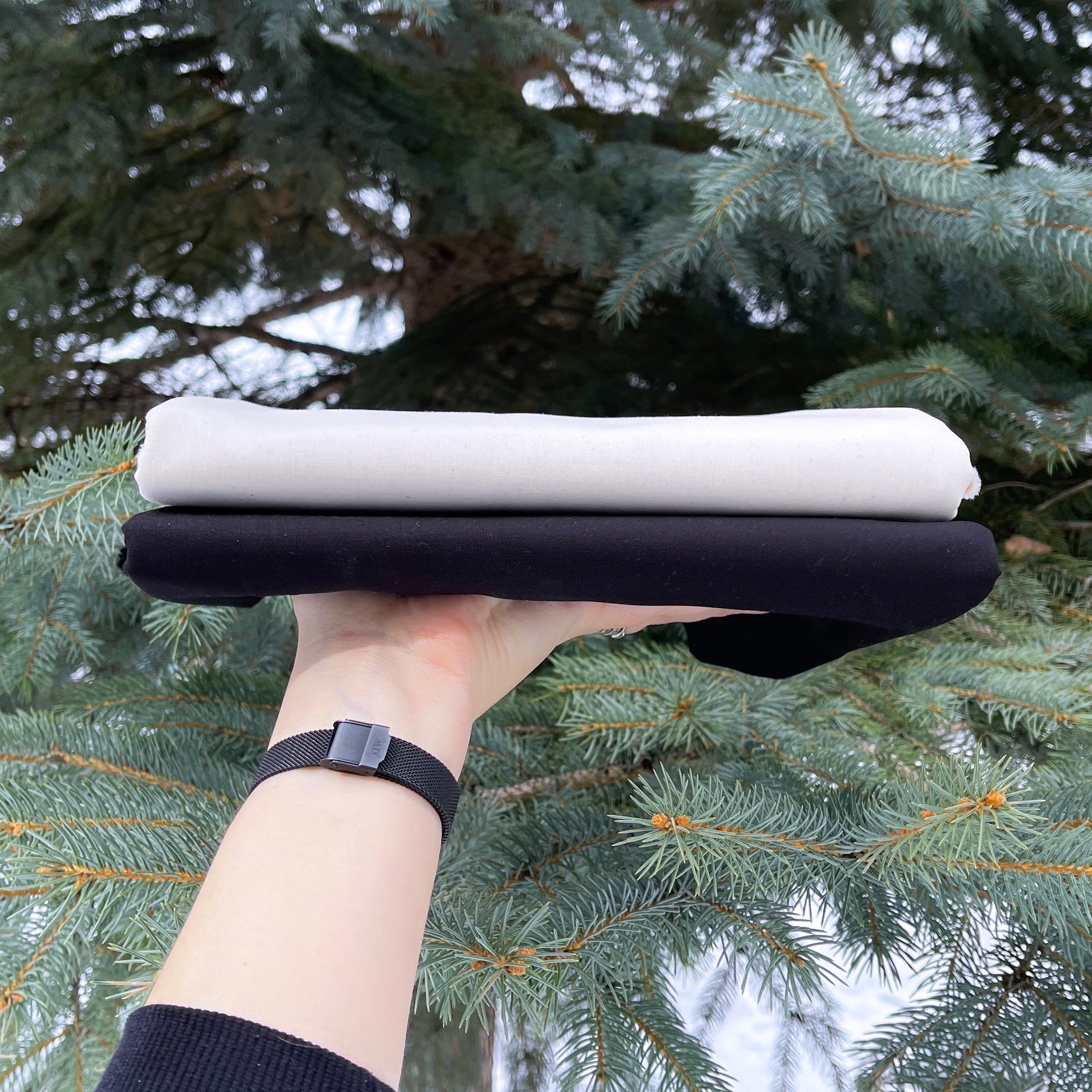 This bundle includes the Kona Cotton fabrics for the two-colour Birds Hill cover quilt in Natural & Black!