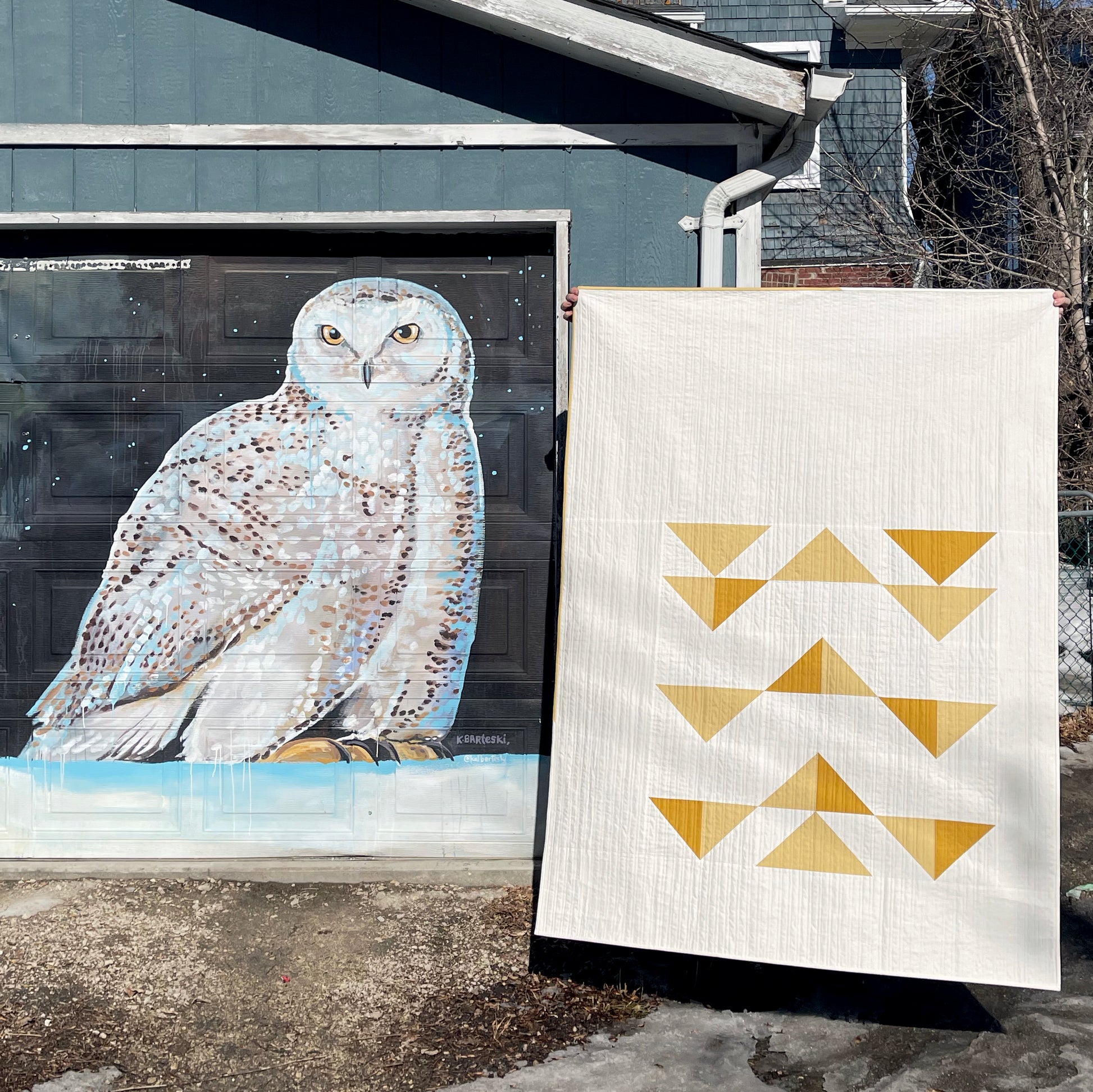 This modern, minimalist quilt pattern is appropriate for quilters of all skill levels and is a fast finish. This design draws its inspiration from the winter sun rising above the horizon over the snowy arctic.