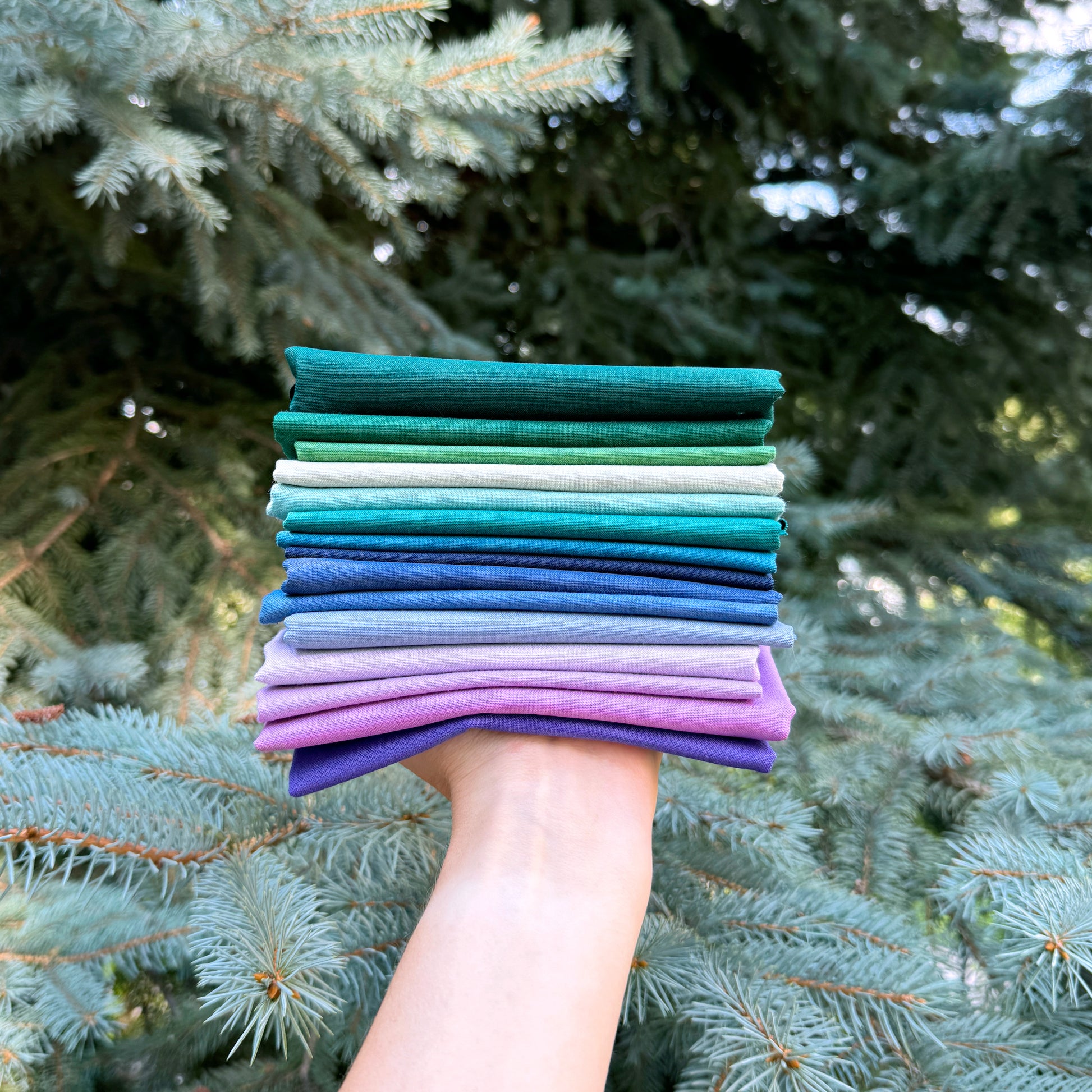 This bundle includes the Kona Cotton fabrics for the Crystal Creek quilt!