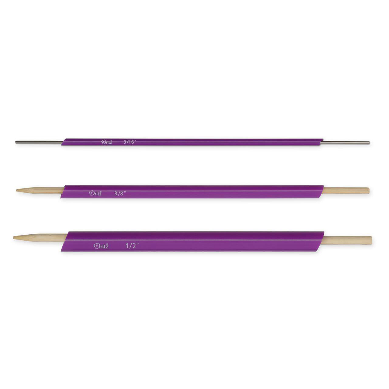 Quick Turn comes with 3 sizes of plastic cylinders and wooden rods used to push and turn fabric tubes quickly and easily. With assorted sizes, you are sure to find the right fit for your project.