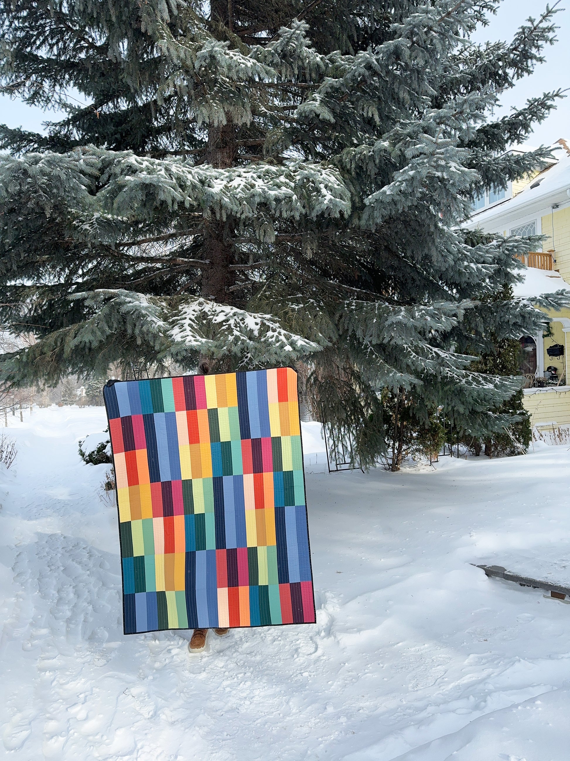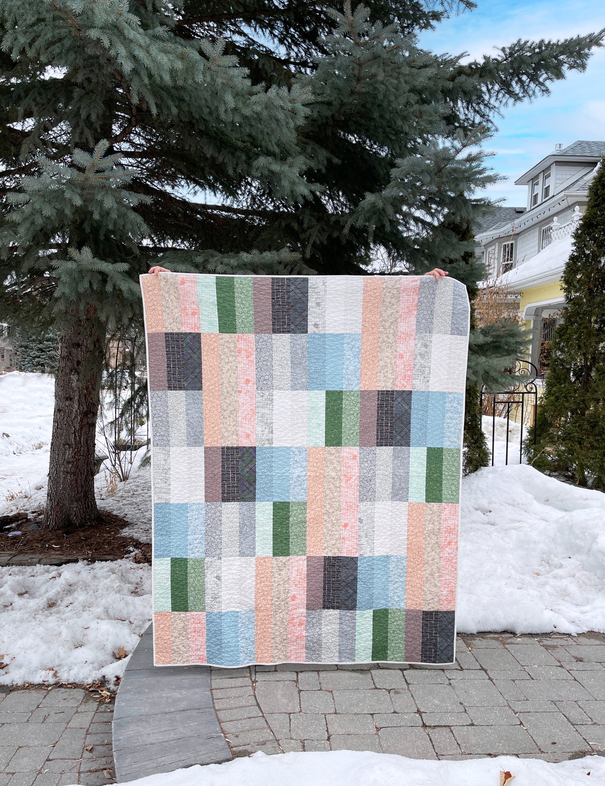 This modern original quilt pattern is appropriate for quilters of all skill levels and is a fast finish. Great for yardage, fat quarters (throw size!) or even scraps!