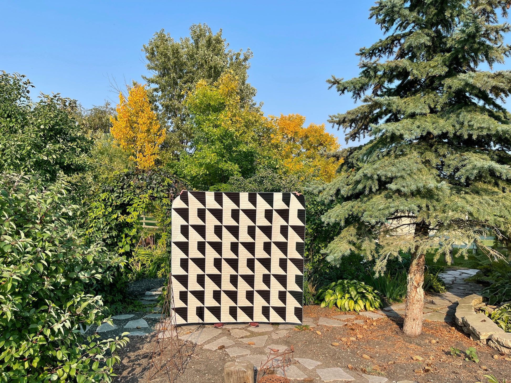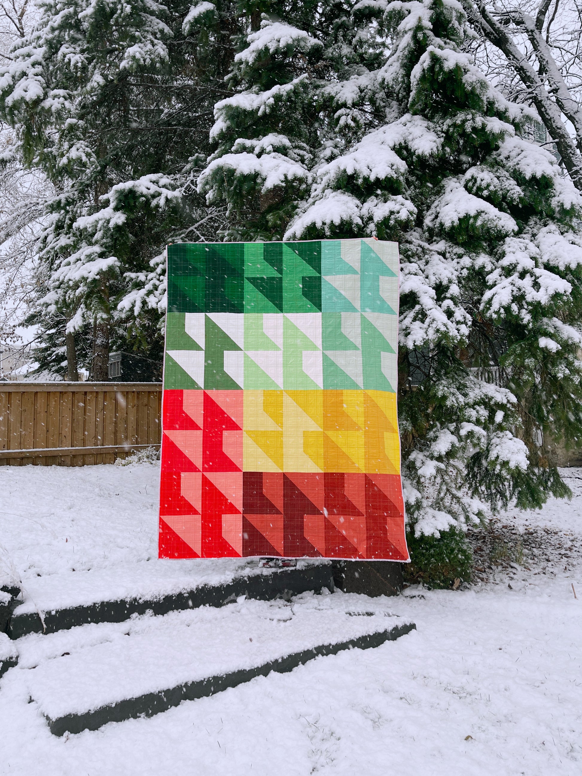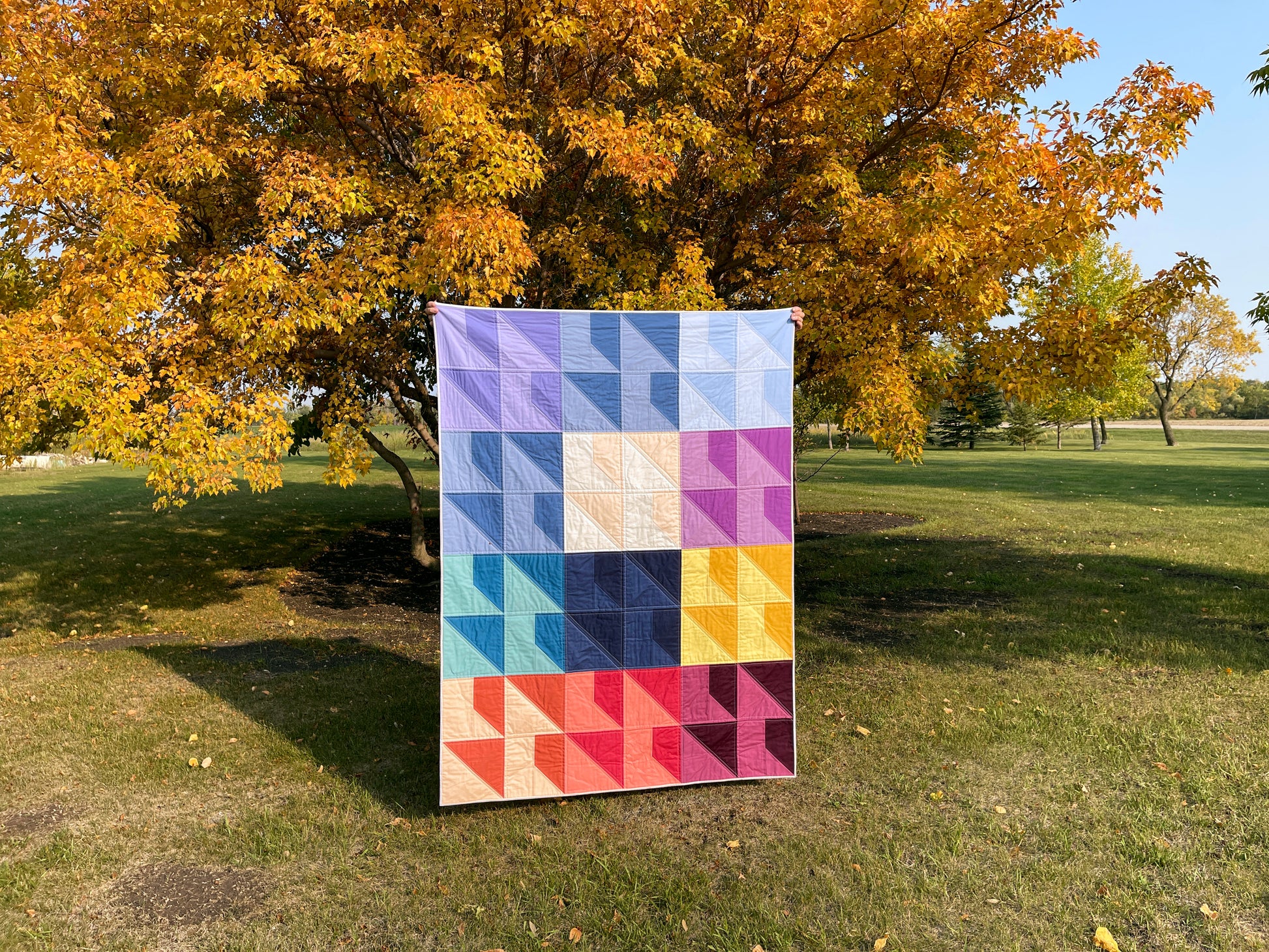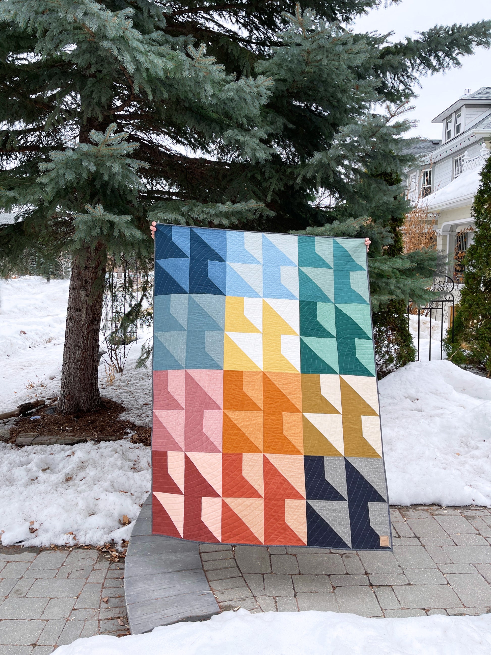 This modern, original quilt pattern made entirely from fat quarters is an excellent pattern for beginners! It also includes a bonus 2-colour option. The pattern includes beginner friendly instructions for the following sizes: