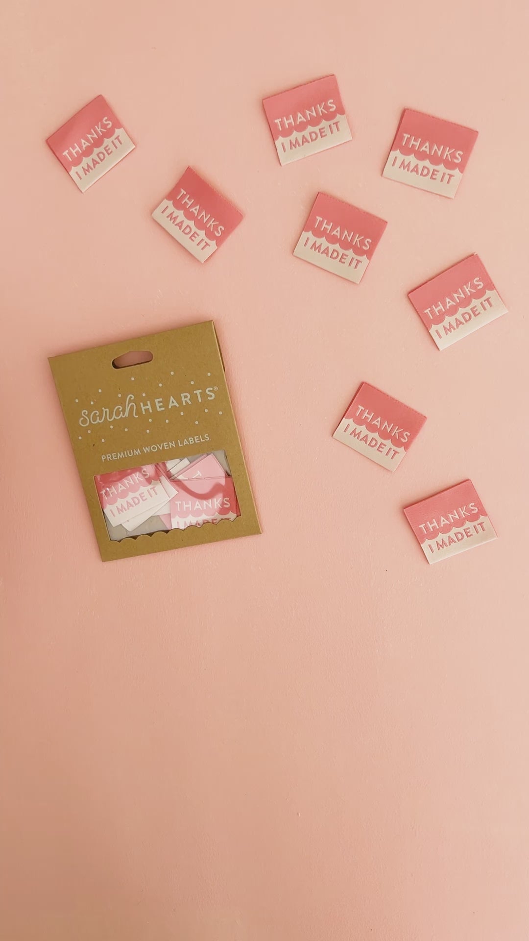 Sarah Hearts Woven Labels - Thanks I Made It (Coral)
