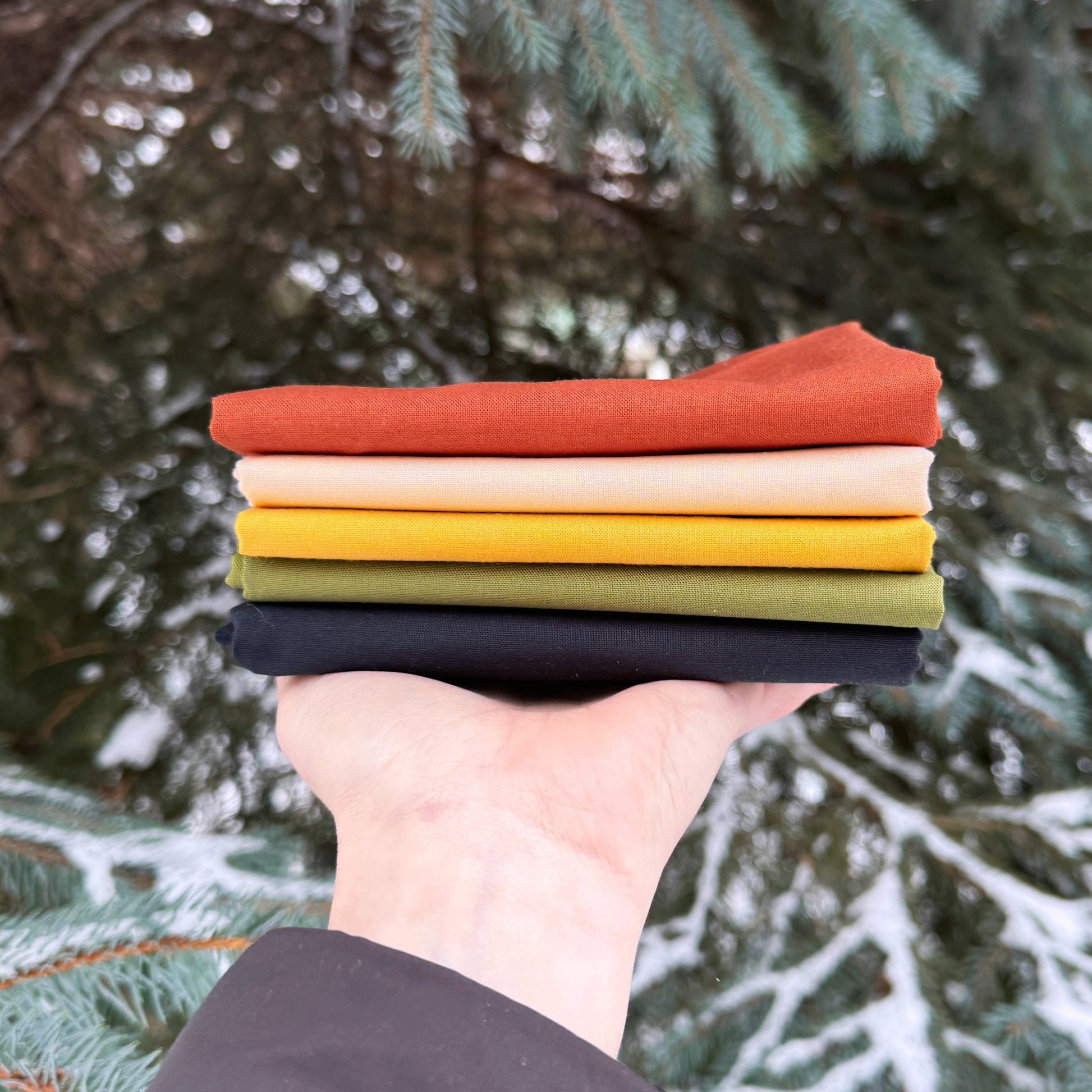 This bundle includes the Kona Cotton fabrics used for NEW Spruce Woods cover quilt!