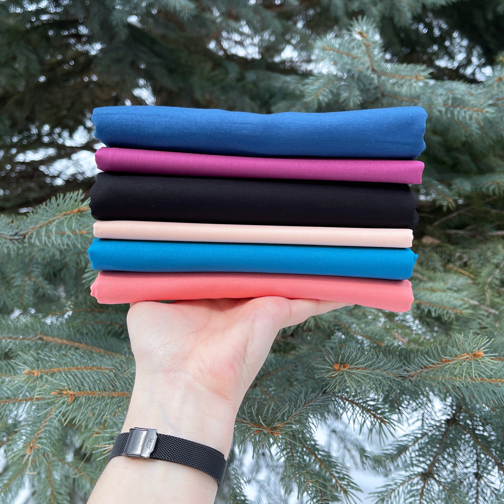 This bundle includes the Kona Cotton fabrics used for the Star Lake version in black, blues and peaches.