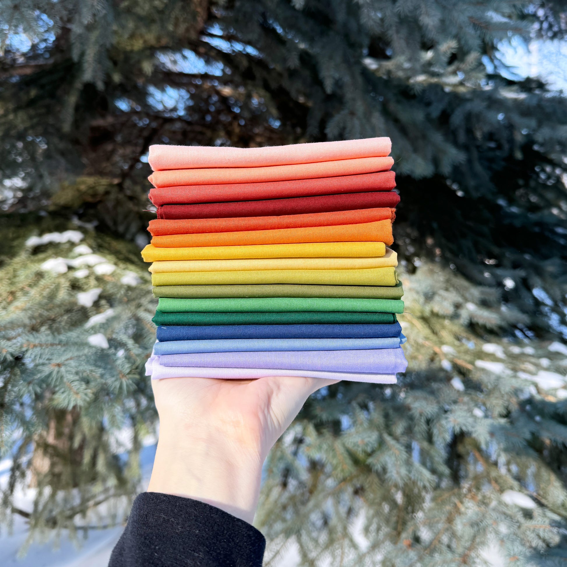 This bundle includes the Kona Cotton Fat Quarters used for Sunny Side cover quilt!