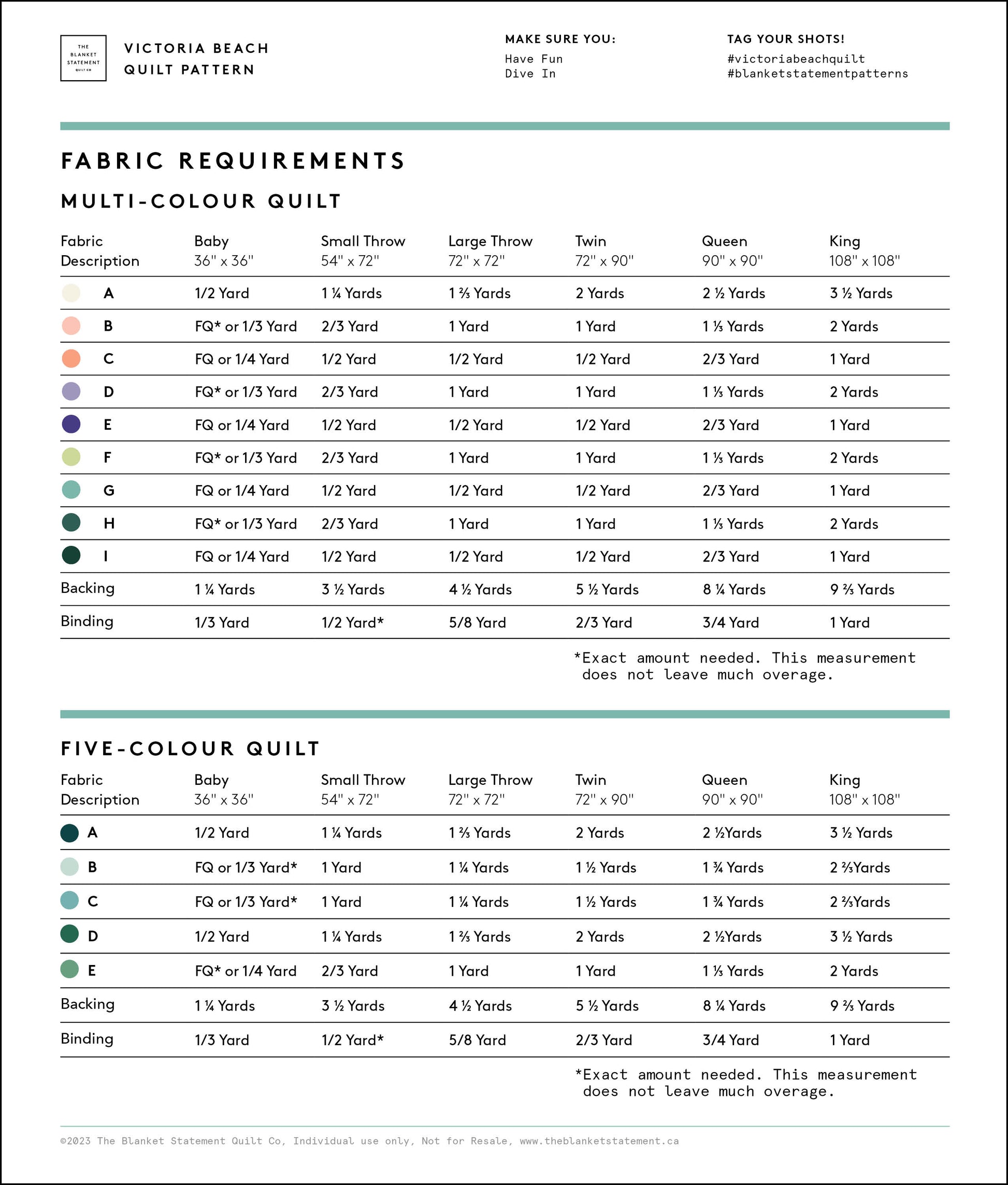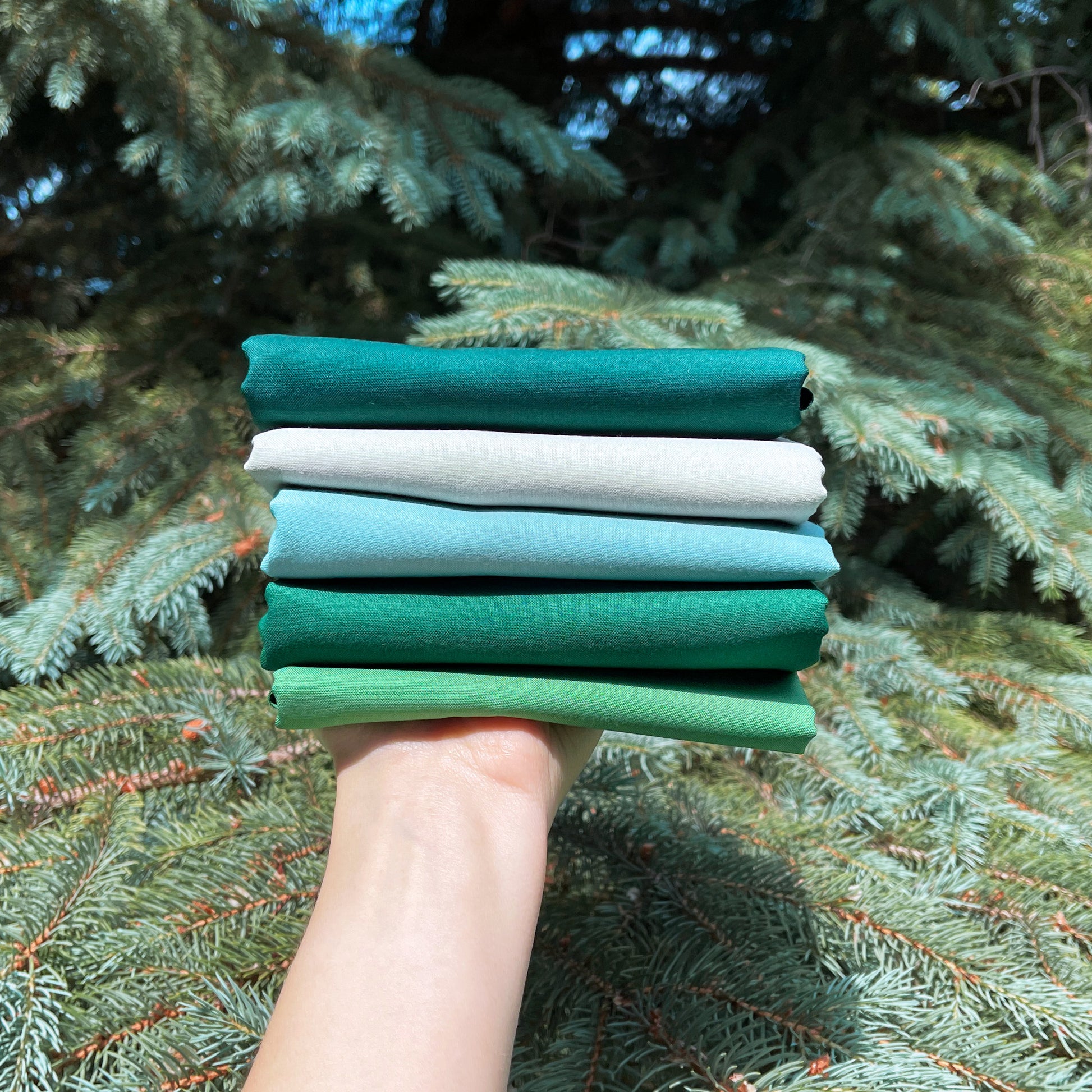 This bundle includes the Kona Cotton fabrics used for the Victoria Beach five-colour quilt in classic TBS greens!