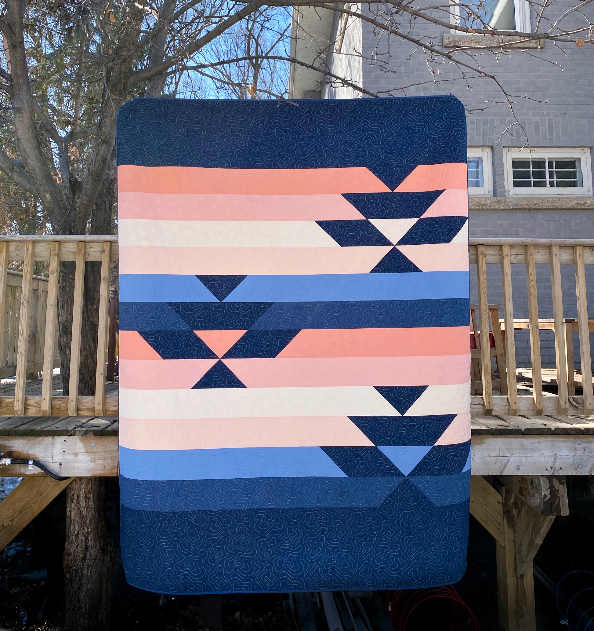 This modern, original quilt pattern is appropriate for beginners to seasoned quilters! Along with the standard 7-colour version, this pattern includes a bonus Rainbow, Scrap-Friendly version!